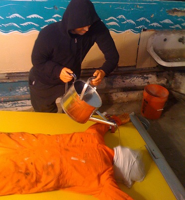 A demonstration of waterboarding at Coney Island. [Creative Commons-licensed photo from the Flickr account of Salim Virji]