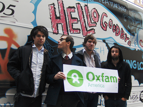 The band Hellogoodbye—the apparent winner of my months-long Pandora search for new favorite bands—poses to support Oxfam America. (Creative Commons-licensed photo from the Flickr page of Oxfam America)