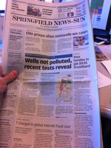 Today’s paper features the results of health district tests of private drinking water wells near pollution seeping from a New Carlisle landfill.