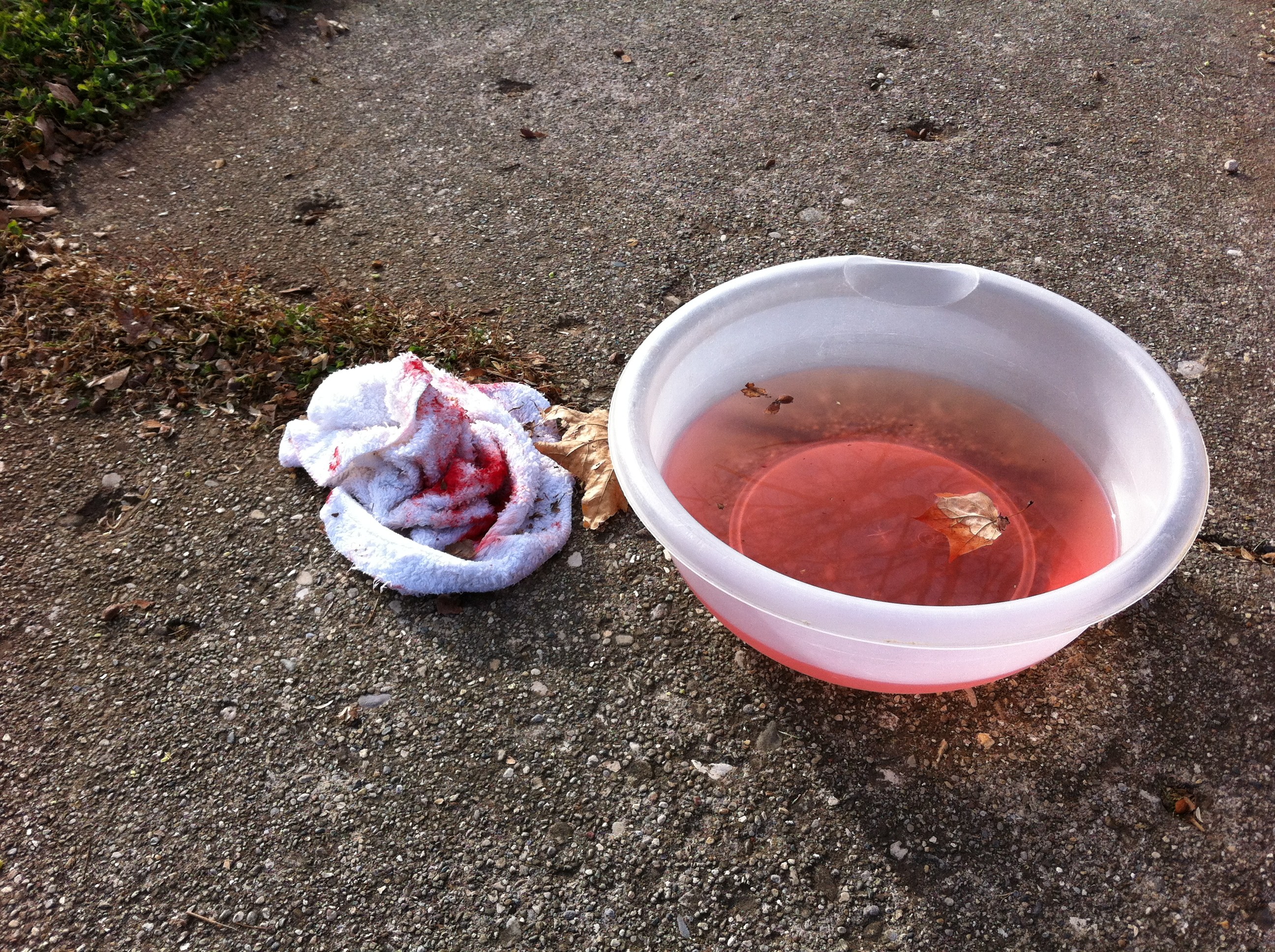 My first sight on the scene was this. I quickly snapped a picture in fear someone would move it from its place on a nearby sidewalk. Blood spatters stained the sidewalk for a full block in one direction from the explosion.